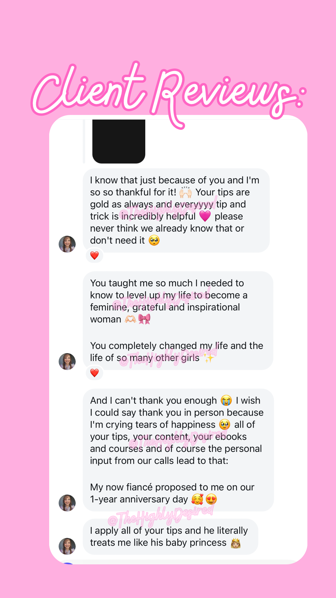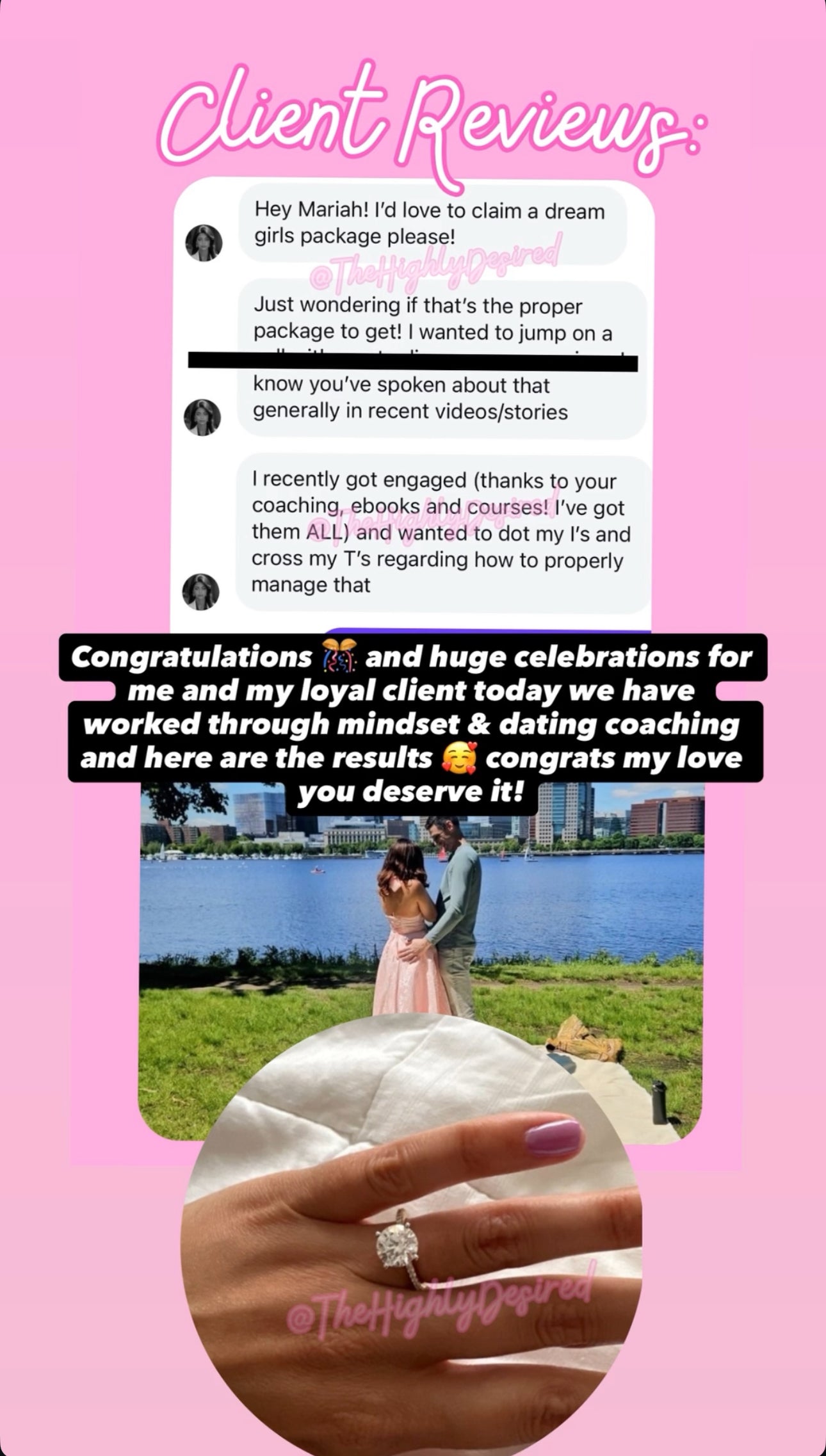 Client used my Dream Girls Dating Package, Mindset coaching, & ebooks to acheive these results 🤍