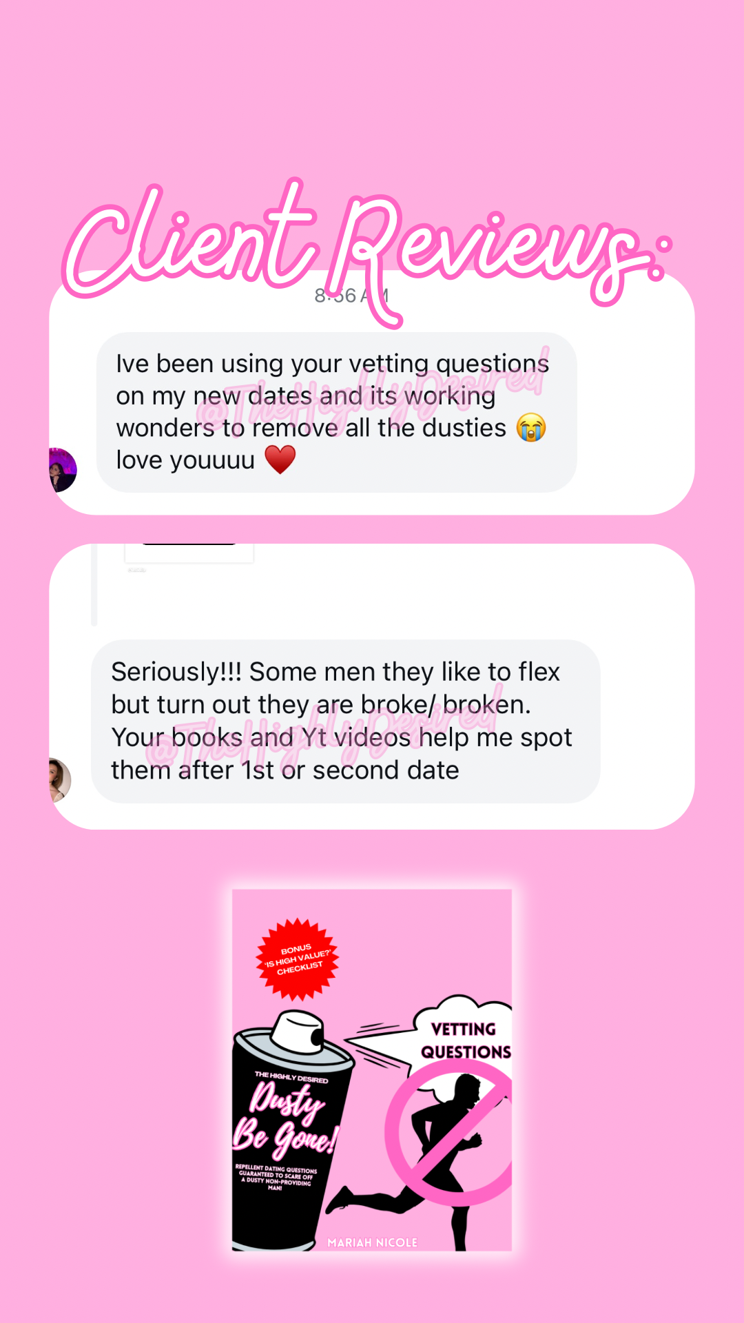 This tool will help you make informed decisions & empower you, all while ensuring you do not waste your time with NON-PROVIDING MEN! Say GOODBYE to uncertainty- "DUSTY BE GONE!" is your key to filtering out the FRAUDS from the BEST OF THE BEST!