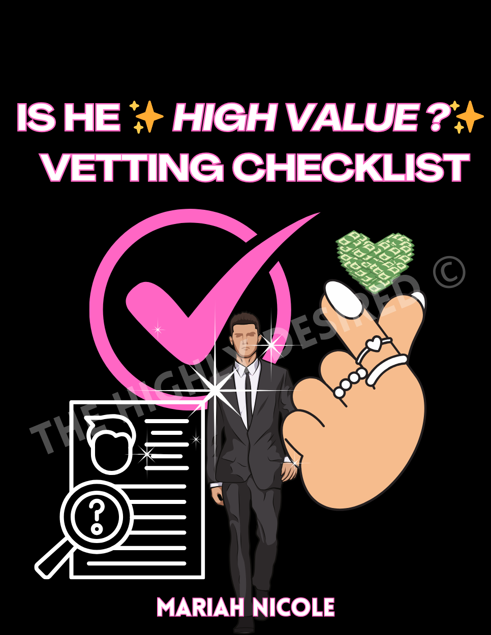 It will guide you through finding key attributes and qualities that define a High Value man, ensuring you make choices aligned with your Soft Life Journey. Level up your dating experience like a Highly Desired Woman, using the "Is He High Value?" Dating Checklist to find quality, established, elite men.